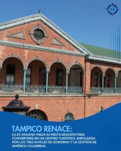 Tampico inicia restauración de la ex Aduana para consolidar centro turístico bajo administración de Américo Villarreal Con el impulso del gobierno del estado de Tamaulipas, la Administración del Sistema Portuario Nacional (Asipona) dio inicio a la restauración del histórico edificio de la ex Aduana en el Puerto de Tampico, marcando un paso decisivo hacia la creación de un centro turístico en la región.