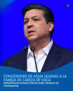 Registros oficiales de la Comisión Nacional del Agua (Conagua) y de plataformas de transparencia documentan la vigencia prolongada de concesiones federales de agua subterránea otorgadas a familiares y aliados políticos del exgobernador de Tamaulipas, Francisco García Cabeza de Vaca, en zonas del estado que enfrentan presión hídrica y episodios recurrentes de escasez.